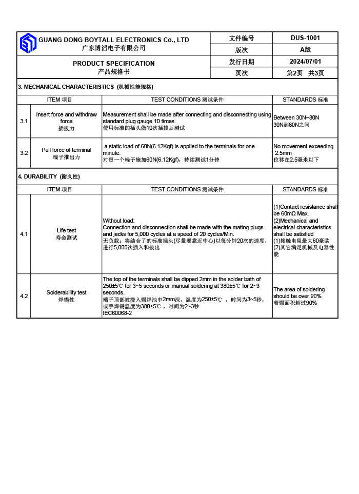 - Specification